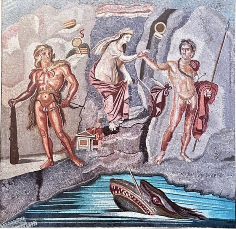 The polychrome mosaic, dating to Roman times, depicts the liberation of Princess Hesione by Hercules.